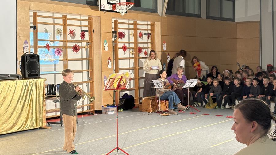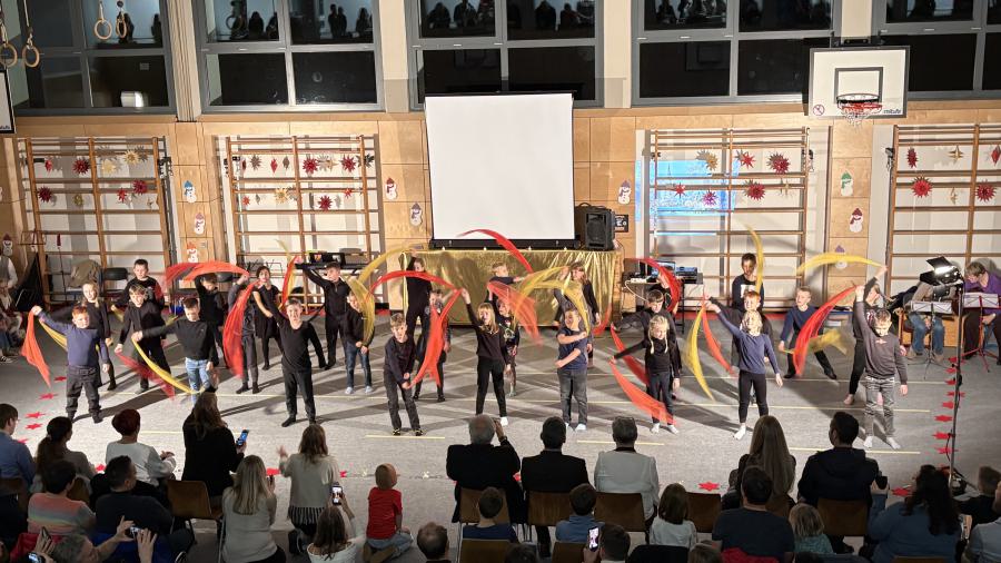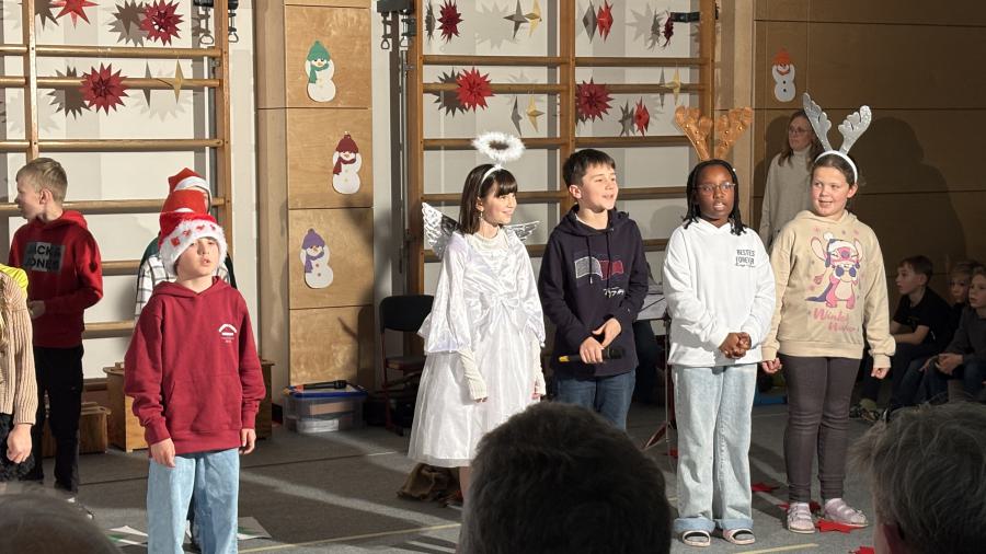 Die einzelnen Klassen präsentierten im Anschluss ein abwechslungsreiches Programm. Die Erstklässler sangen fröhlich „Schneeflöckchen, Weißröckchen“ und zeigten ihr Können beim Nussrondo als Sprechstück. Die zweite Klasse verzauberte mit dem Lied „Sternenwünsche“ und einem stimmungsvollen Tüchertanz. Rhythmisch und mit viel Körpergefühl überzeugte die dritte Klasse mit einer Bodypercussion sowie dem Lied „Singen wir im Schein der Kerzen“. Die Viertklässler setzten mit einem schwungvollen Rap und dem Gedicht „Knecht Ruprecht“ einen besonderen Akzent.