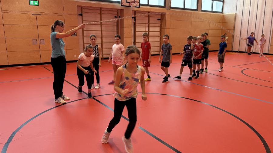 Angeleitet von einer speziell ausgebildeten Trainerin lernten die Kinder verschiedene Sprungvarianten kennen – vom einfachen Einzelsprung über anspruchsvollere Techniken wie den Kreuzsprung bis hin zu kleinen Sprungfolgen. Mit großer Freude übten sie die Bewegungen und konnten schnell sichtbare Fortschritte machen.