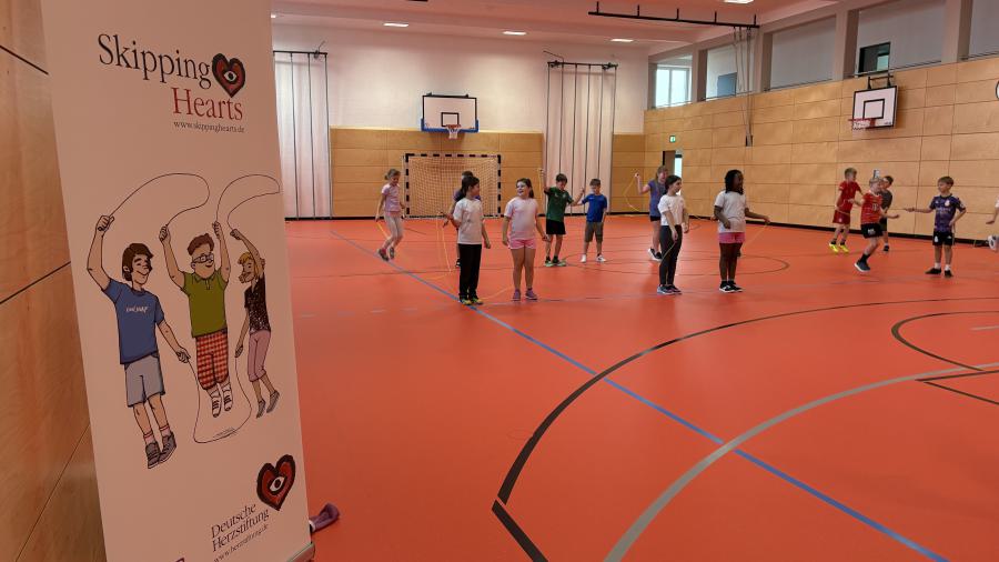 Mit viel Schwung und Begeisterung nahmen die Schülerinnen und Schüler der 4. Klassen am Projekt „Skipping Hearts“ der Deutschen Herzstiftung teil, das an unserer Schule stattfand. Dabei erfuhren sie, dass Seilspringen nicht nur Spaß macht, sondern auch einen wichtigen Beitrag zur Gesundheit leistet.
